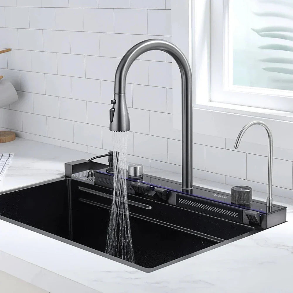 Pachet Promo Lux Bucătărie + Baie – Chiuvetă Inox Multifuncțională & Set Duș Smart cu LED